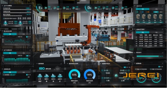 管理者需要快速掌握工廠運(yùn)營(yíng)全局,但傳統(tǒng)報(bào)表數(shù)據(jù)分散、呈現(xiàn)滯后。孿生工廠設(shè)計(jì)服務(wù)通過管理決策智能體,將生產(chǎn)、質(zhì)量、能耗等多維度數(shù)據(jù)整合為可視化看板,智能體可自動(dòng)識(shí)別關(guān)鍵指標(biāo)異常(如設(shè)備OEE下降、能耗突增),并生成根因分析與優(yōu)化建議。捷瑞數(shù)字為某重工企業(yè)打造的管理決策界面中,智能體將虛擬工廠模型與實(shí)時(shí)數(shù)據(jù)結(jié)合,管理者通過三維漫游可直觀查看各車間產(chǎn)能分布,點(diǎn)擊異常設(shè)備即可調(diào)取運(yùn)行曲線、維護(hù)記錄等詳細(xì)信息,智能體同步推送“設(shè)備負(fù)載均衡調(diào)整”“工藝參數(shù)優(yōu)化”等決策建議,使管理者從“數(shù)據(jù)篩選”轉(zhuǎn)向“精準(zhǔn)決策”。