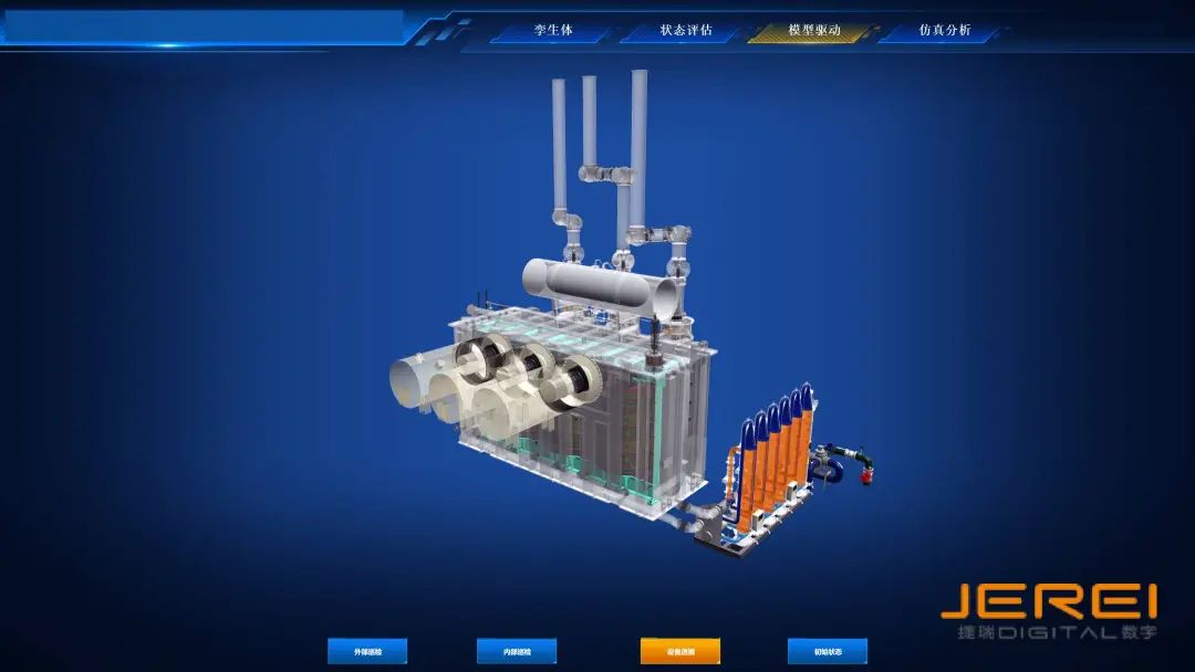 變壓器是水電站電力系統(tǒng)中關(guān)鍵設(shè)備之一。目前,當變壓器出現(xiàn)疑似缺陷等故障問題時,一般采用人為開展碎片式數(shù)據(jù)收集分析的方式進行研究檢查,無法系統(tǒng)、及時、全面的進行設(shè)備健康評價、故障預(yù)測和智能診斷。捷瑞數(shù)字攜手國內(nèi)某大型電站打造主變壓器數(shù)字孿生體,以數(shù)字孿生、虛擬仿真技術(shù)賦能變壓器的巡檢維護,提升變壓器運維管理水平,實現(xiàn)變壓器由“傳統(tǒng)人工運檢”向“智能數(shù)字驅(qū)動”的管控轉(zhuǎn)型。